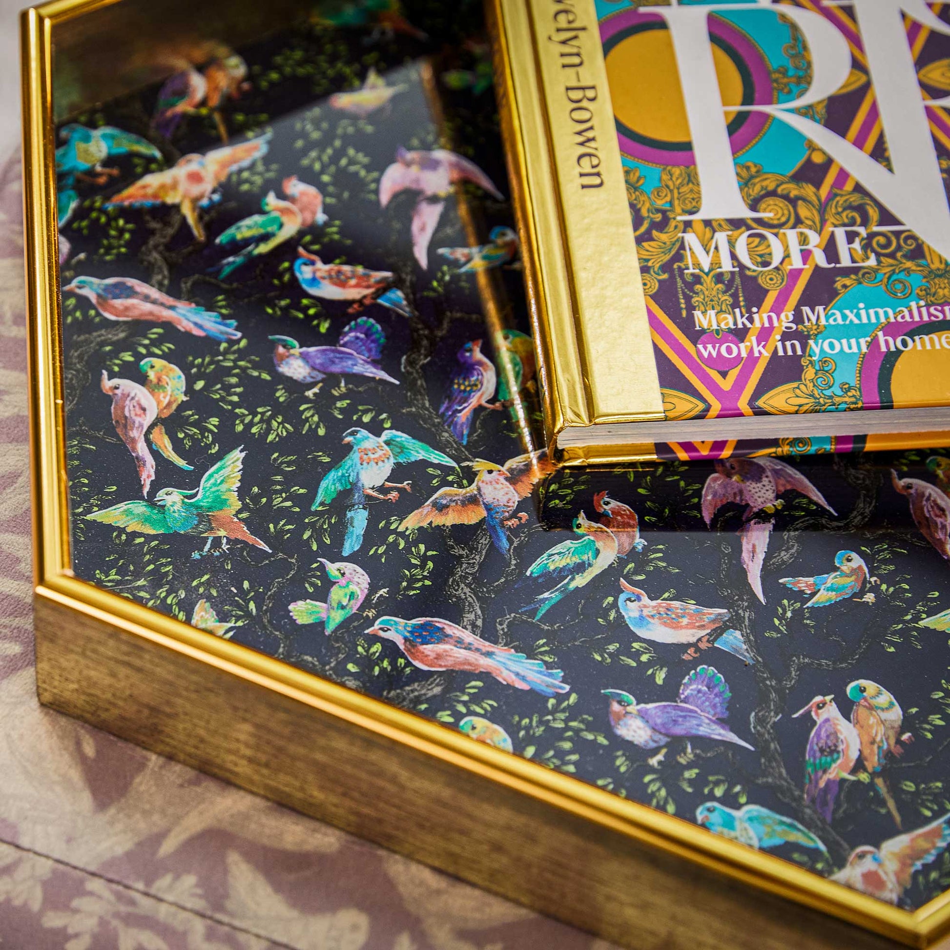 Elevate your entertaining with this striking hexagonal serving tray from the Casa Nova Collection. Featuring Laurence Llewelyn-Bowen's distinctive Birdity Absurdity design in sophisticated black and gold, this piece combines contemporary style with practical elegance. Perfect for serving refreshments or displaying your finest pieces, it brings an artistic flourish to any occasion. Exclusively available online. Compliment your look with the matching coaster.