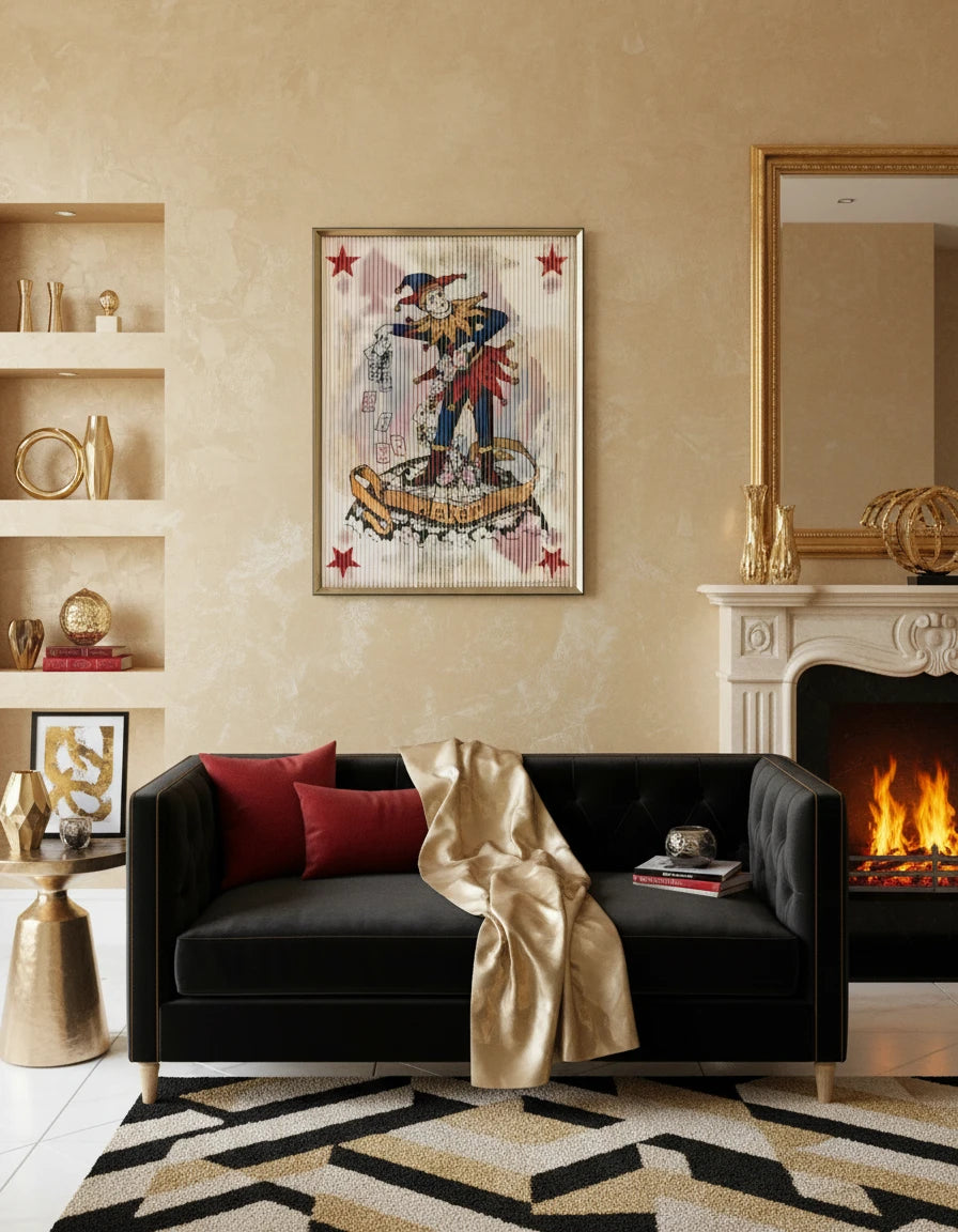 Discover the captivating King Queen Joker Playing Cards Kinetic Wall Art, where three distinct images converge in a single, ingeniously engineered composition. Utilising advanced lenticular ridge technology, this large-scale artwork reveals the top three spade cards, each appearing as you shift your viewing position. Stand centre-stage to witness one image, move left for a second perspective, and position yourself to the right to unveil a third. This sophisticated interplay of perspective and design creates an ever-evolving visual experience that rewards repeated observation. The apparent movement generated by the precisely engineered ridges transforms static imagery into dynamic art, offering collectors and design enthusiasts a compelling conversation piece that challenges perception and celebrates the artistry of contemporary kinetic design.