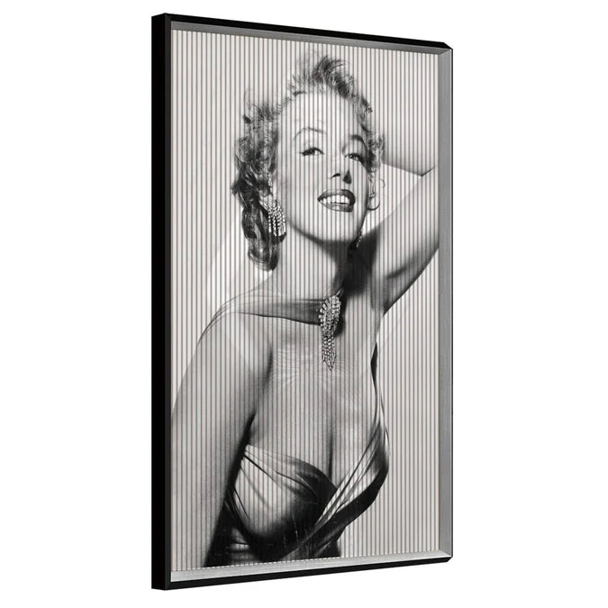 Discover the enchantment of cinema's most iconic figure through this refined Marilyn Monroe Kinetic Wall Art, available in 83cm or 118cm dimensions. Employing sophisticated lenticular technology, this piece reveals three mesmerising images that transform subtly as your viewing angle shifts, crafting a dynamic visual experience that captivates from every vantage point. The luminous composition is elegantly presented within a gold-toned bevelled frame, introducing a touch of timeless glamour to your space. Meticulously constructed from premium materials engineered for longevity, this artwork transcends conventional wall décor to become a distinguished focal point. An ideal selection for discerning collectors and admirers of classic Hollywood aesthetics who seek to infuse their environment with both artistic depth and enduring sophistication.